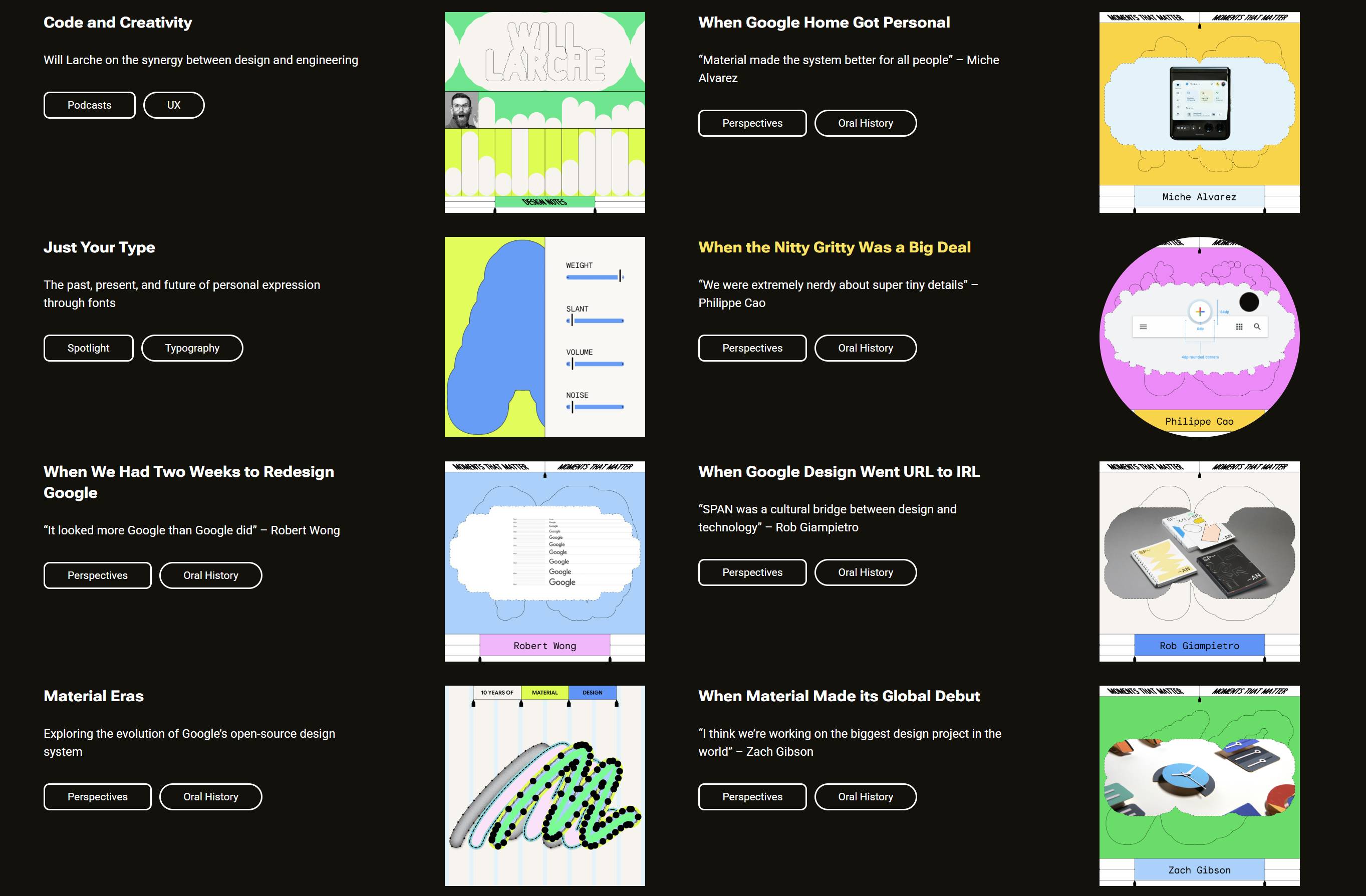 该网站是 Google 的设计文化、案例、字体、流程等集合网站