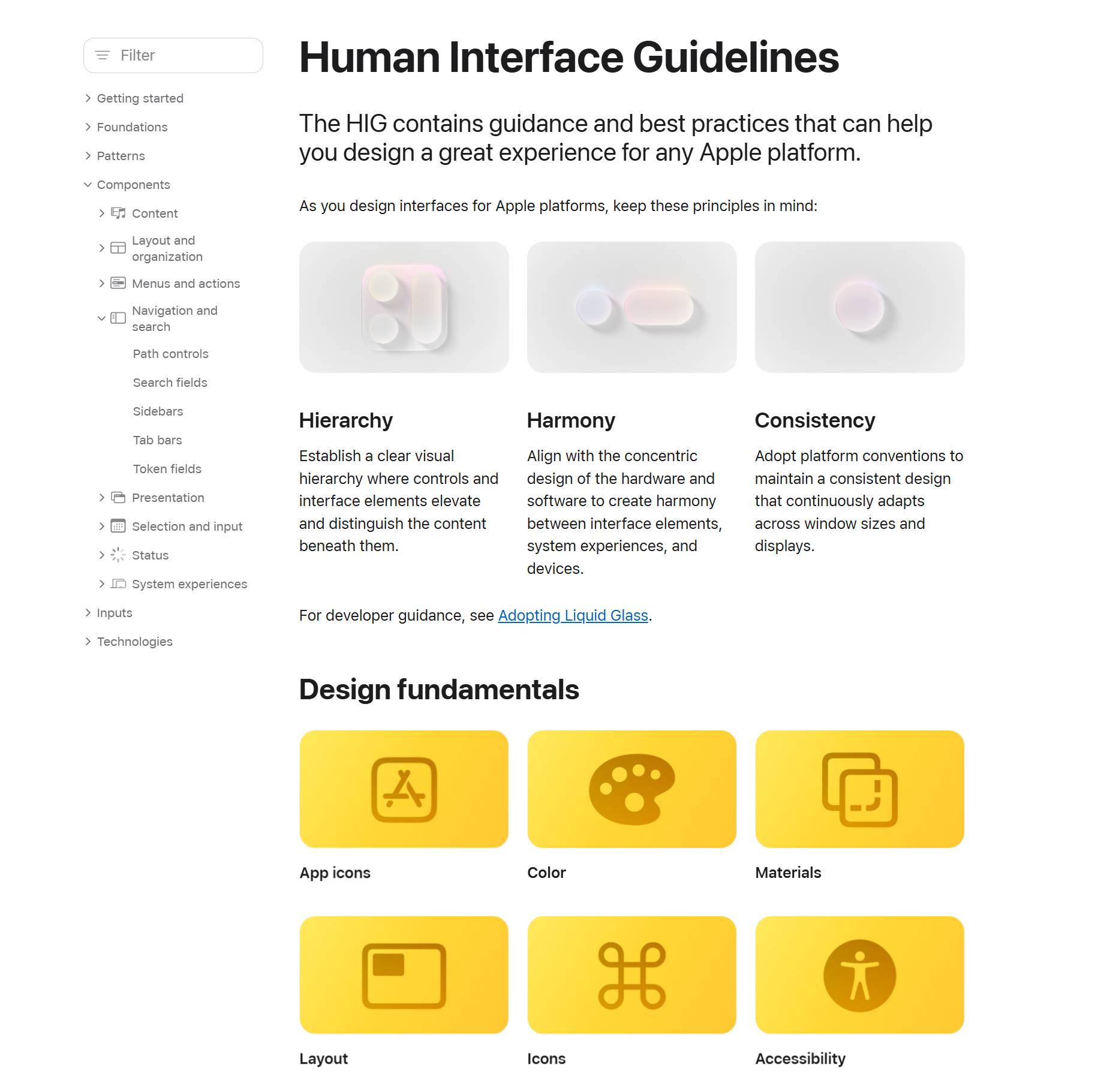 这是苹果整套平台设计规范,偏“平台体验原则 + 交互规范”