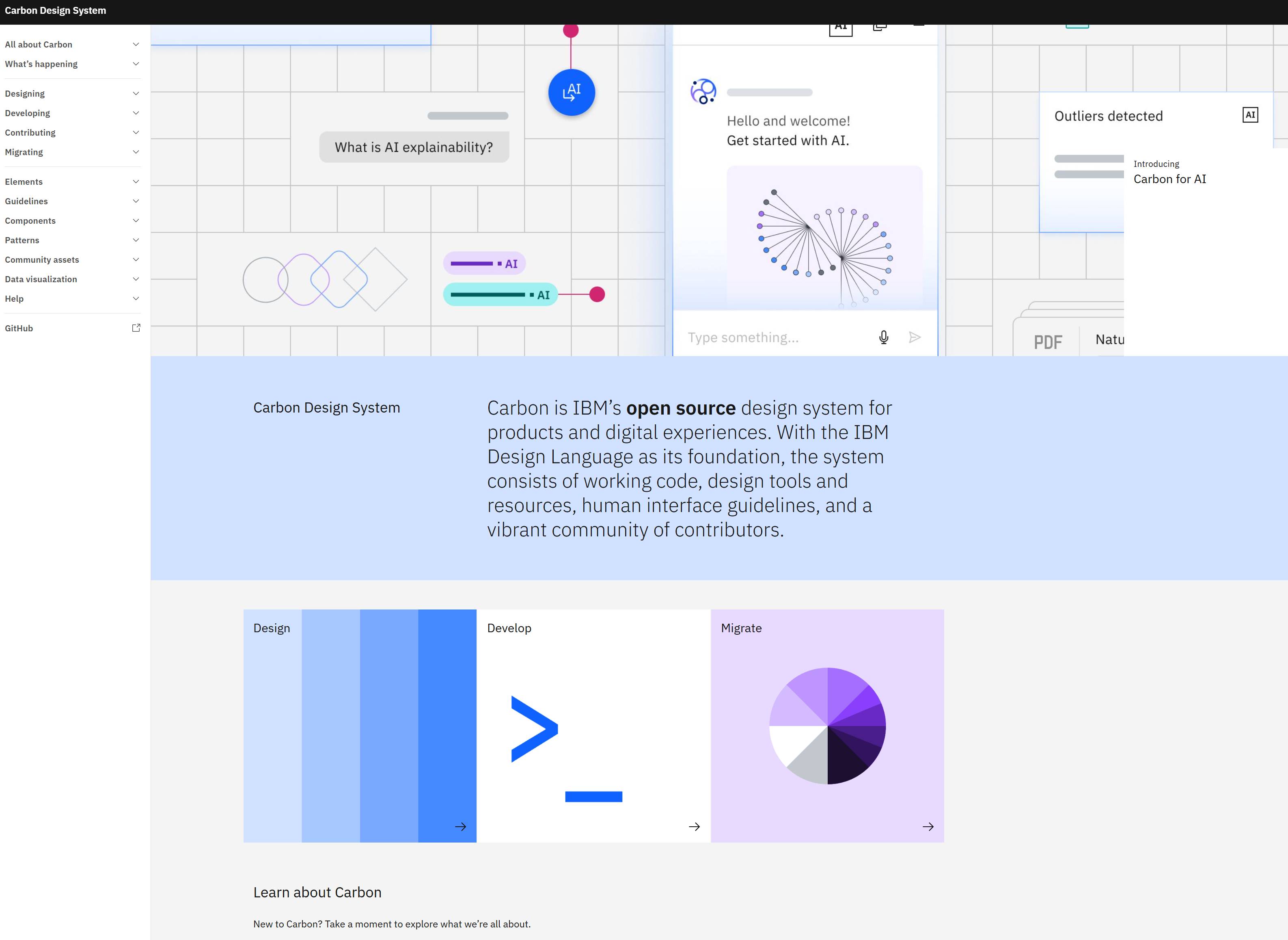 Carbon 是 IBM 开源的设计设计系统,包括代码、设计工具和资源、人机界面指南以及社区